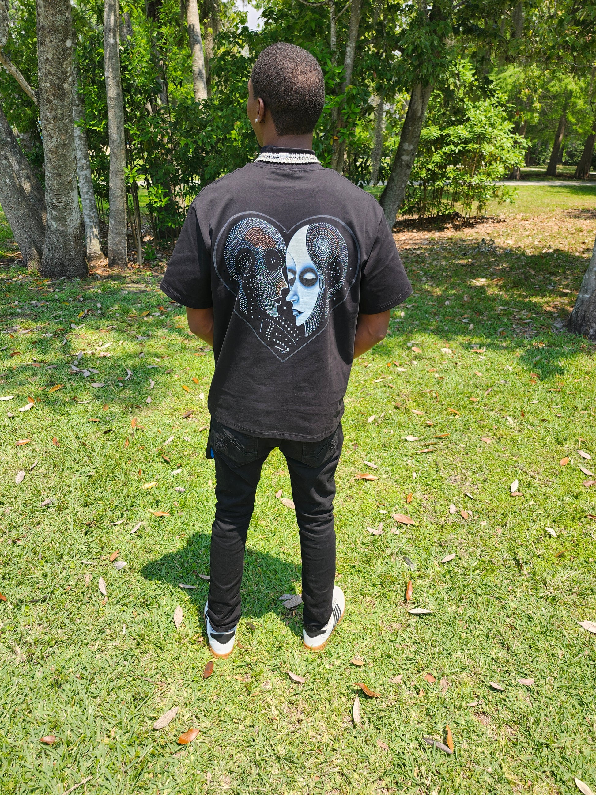 Made with 100% cotton, This high mock neck collar shirt features a drop shoulder design and eye-catching graphics (DTG and screen printed). Comfort and style rolled into one!